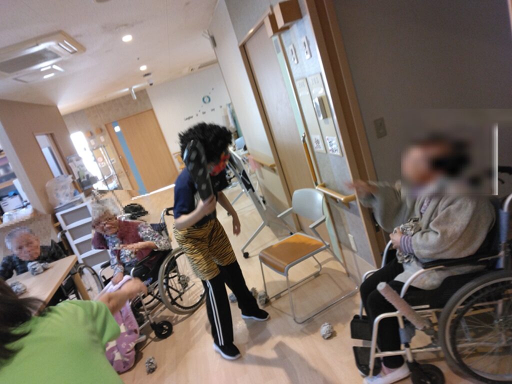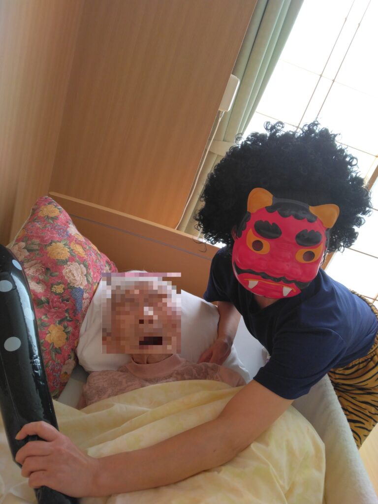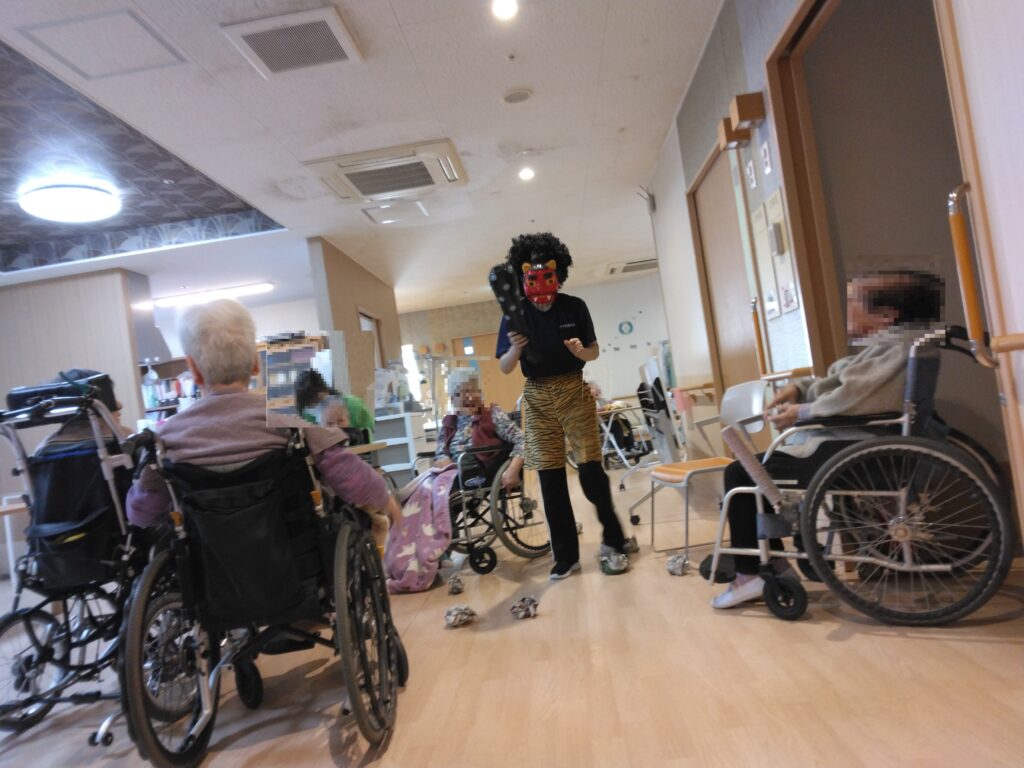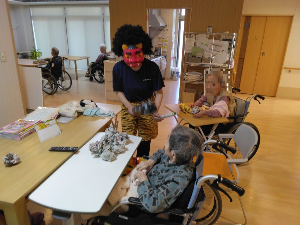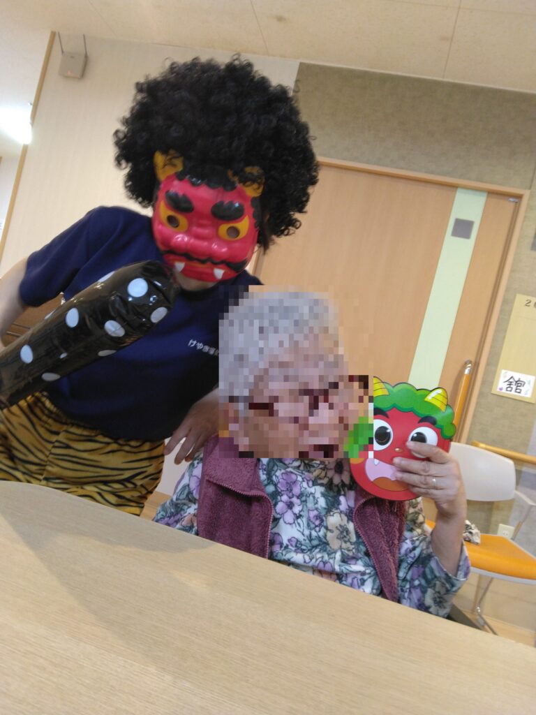 突然の鬼の登場に、入居者さんもビックリ!していました( ゚Д゚)