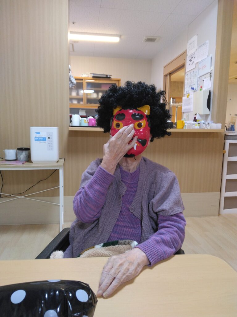 2月3日(火)節分に、ユニットの行事として豆まきを行いました☺入居者さんも、鬼に目掛けて豆をまき、今年の福を祈りました